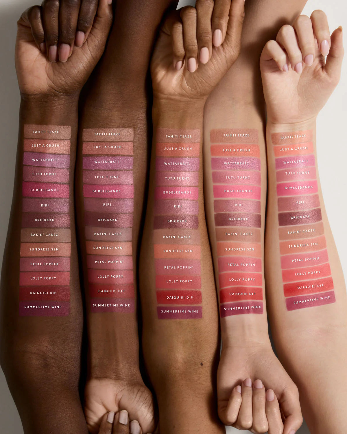 SUMMERTIME WINE: MICA, DIMETHICONE, TRIMETHYLSILOXYSILICATE, SILICA, DIMETHICONE/VINYL DIMETHICONE CROSSPOLYMER, ETHYLHEXYL PALMITATE, ETHYLHEXYLGLYCERIN, ZINC STEARATE, SYNTHETIC FLUORPHLOGOPITE, VINYL DIMETHICONE/METHICONE SILSESQUIOXANE CROSSPOLYMER, LAUROYL LYSINE, CAPRYLIC/CAPRIC TRIGLYCERIDE, DEHYDROACETIC ACID, STEARIC ACID, MAGNOLIA OFFICINALIS BARK EXTRACT, TOCOPHEROL, TITANIUM DIOXIDE (CI 77891), IRON OXIDES (CI 77491, CI 77499), RED 7 LAKE (CI 15850), RED 6 (CI 15850), ULTRAMARINES (CI 77007), BLUE 1 LAKE (CI 42090).